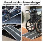 Equipmed Folding Portable Wheelchair Ramps are designed for ease of use and durability. They’re a smart option to facilitate easy access for manual, power wheelchair and mobility scooter users to overcome steps and kerbs.