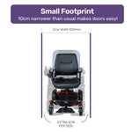 Getting in and out of the Equipmed Wheelchair is easy thanks to the swivelling Captain's chair design. The footrest can be folded up out of the way and fold-up armrests allow for use at tables and desks. Steering is intuitive using the joystick controller easy-to-read LED indicators. A generous sized basket makes it easy to carry belongings.