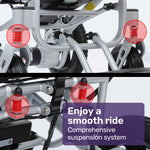 - 4-point front suspension - Ensures a comfortable ride.